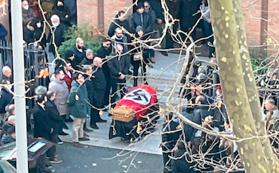 The Catholic Church has condemned as "offensive, unacceptable and irreconcilable with Christianity" a funeral procession outside a church in Rome last Monday in which the casket (above) was draped in a Nazi flag.